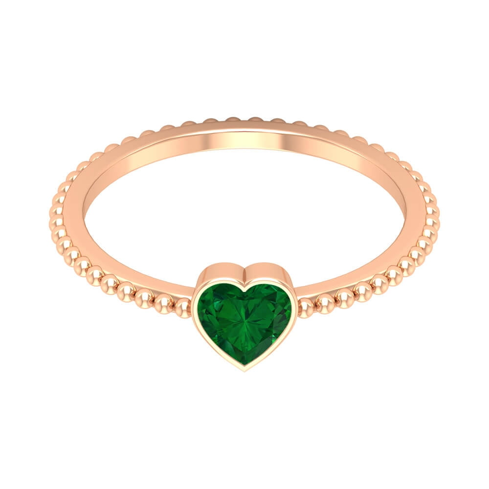 Bezel Set 5 Mm Heart Shape Emerald Solitaire Ring With Beaded Gold Details 1 2 Ct 14k Rose Gold Size Us 11 00 Walmart Com