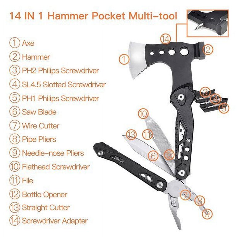 14 In 1 Hammer Multitool With Axe Camping Essentials Stocking Stuffers Gifts For Men White Elephant